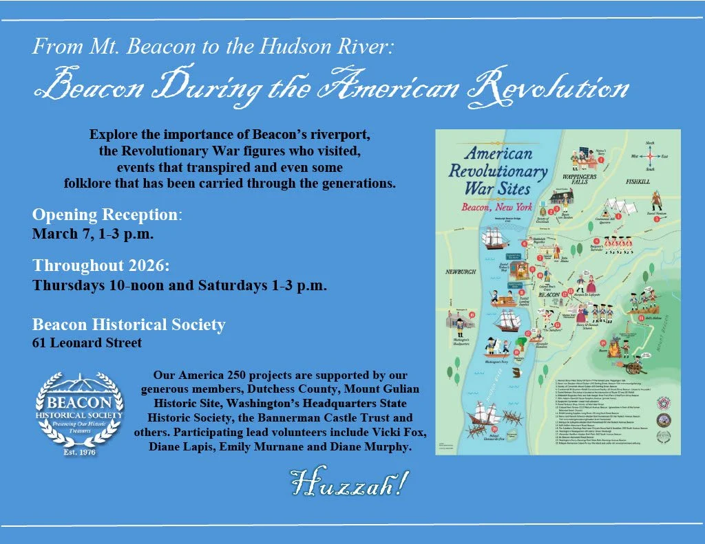 Established in 1976, the Beacon Historical Society showcases Beacon’s history through exhibitions, collections, programs, books and an informative monthly newsletter.